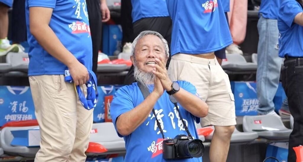 “资阳队,雄起!”75岁的老球迷张均扯着嗓子不断重复,围巾在风中翻飞,呐喊声丝毫不输年轻人。
