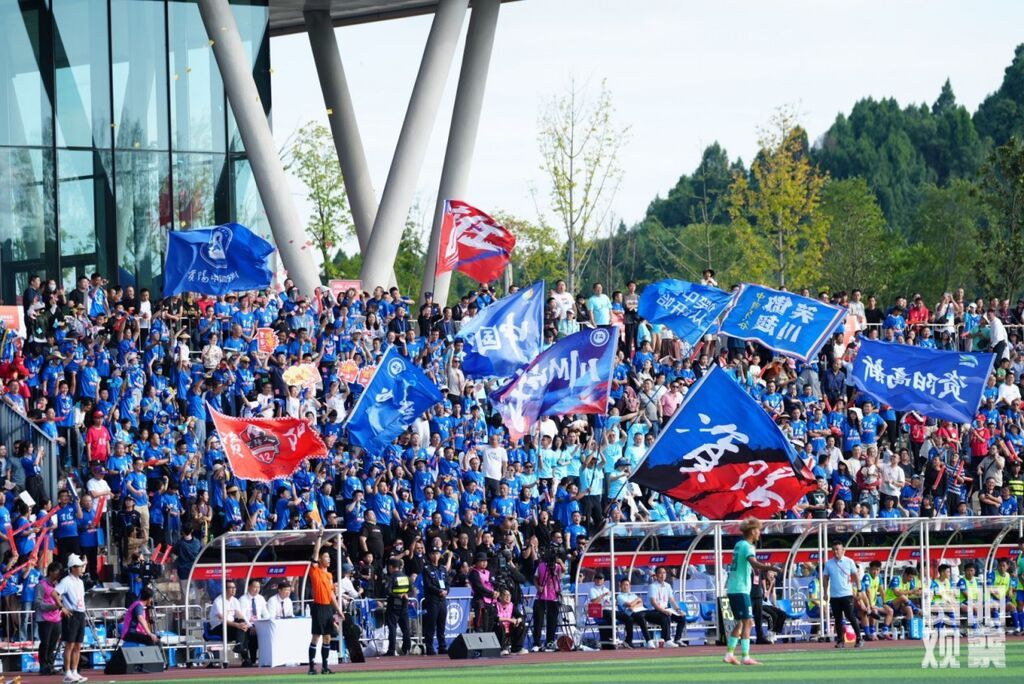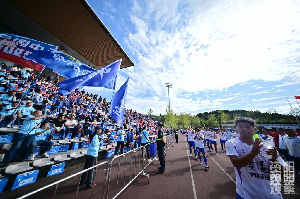 10月18日下午,四川音乐学院临空经济区校区足球场,2025/2026四川银行四川省城市足球联赛在此激战。虽然最终资阳中国牙谷队0:5负于宜宾长江首城队,但看台上和第二观赛区球迷们的呐喊助威,以及终场时大家高唱《水手》,用激昂的歌声传递着与球队共同进退、永不言弃的精神力量,场面令人动容。