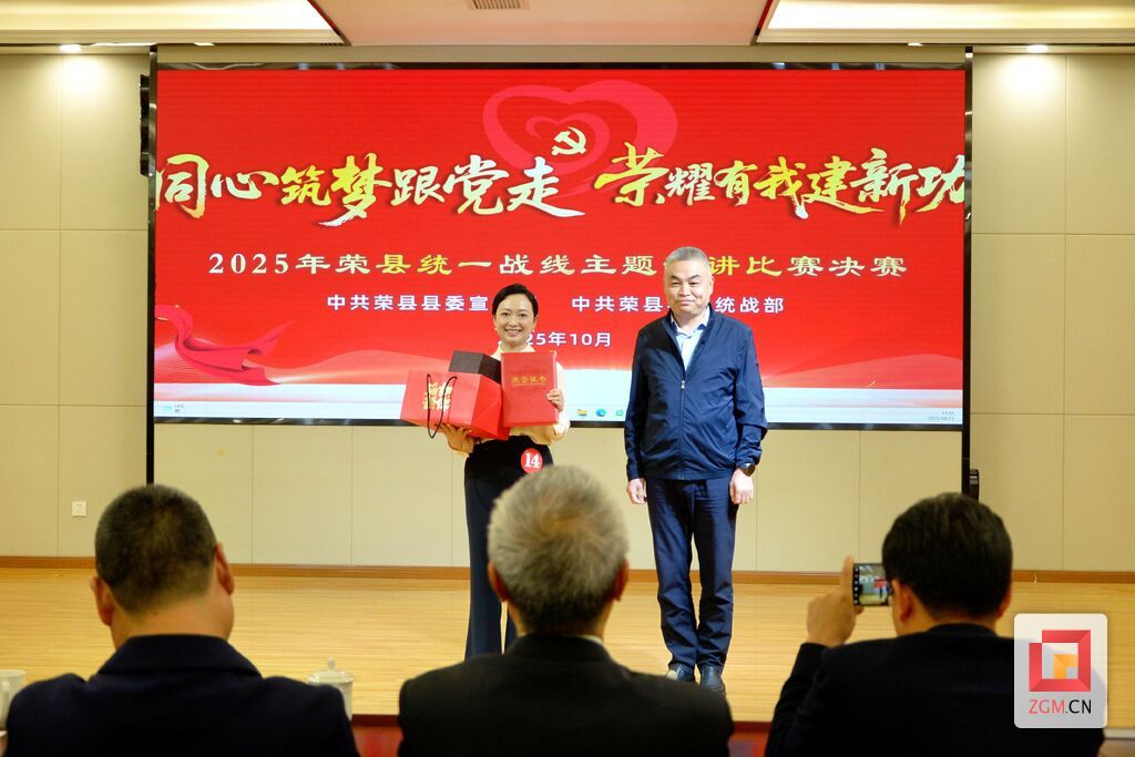 为全面展现荣县统战系统干部及各统战团体成员奋发进取的精神面貌,进一步激发干事创业热情,凝聚智慧力量,助力荣县高质量发展。10月21日,由荣县县委宣传部、县委统战部联合主办的“同心筑梦跟党走 荣耀有我建新功”2025年荣县统一战线主题演讲比赛决赛圆满落幕。市委统战部副部长、机关党委书记黄洪宇,县委常委、宣传部部长李波,县人大常委会副主任刘纯忠等参加。