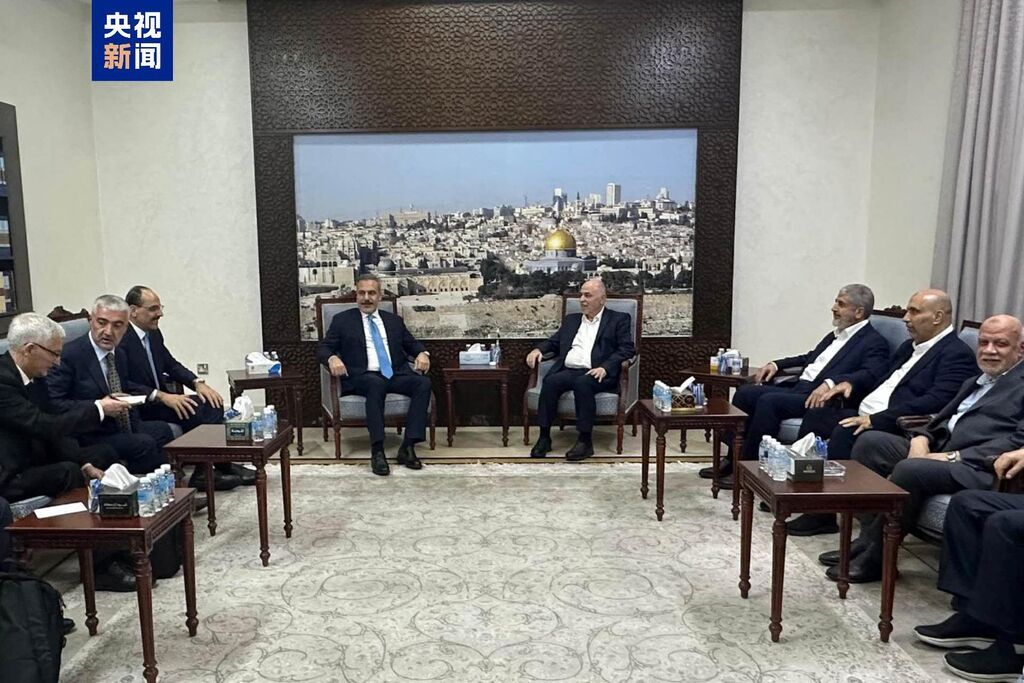 总台记者获悉,当地时间10月21日,土耳其外交部长费丹与国家情报局局长卡伦在卡塔尔首都多哈会见伊斯兰抵抗运动(哈马斯)协商委员会主席穆罕默德·伊斯梅尔·达尔维什及该组织政治局成员。