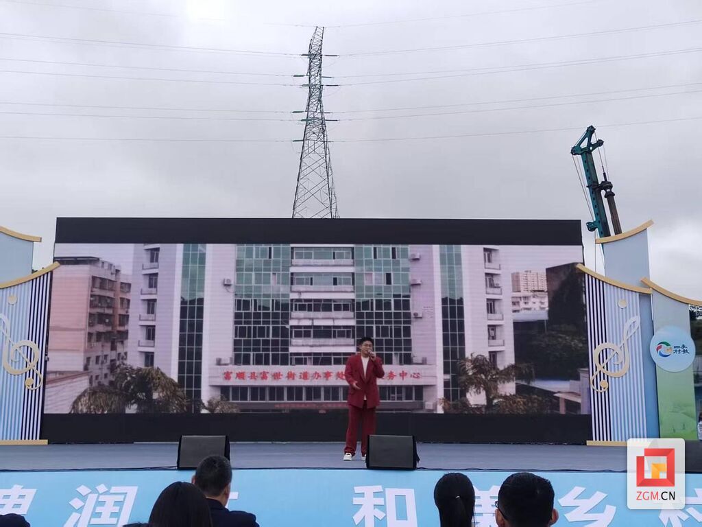 10月21日,2025年自贡市“四季村歌”优秀节目集中展演活动在大安区伍家村隆重举行。由富顺县文化广播电视和旅游局、富世街道办事处及县文化馆共同报送的富世街道原创歌曲《心安富世》在“我的乡村我的歌”主题舞台上以独唱形式演出。