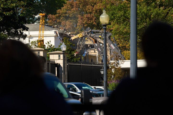 法新社报道,挖掘机拆除了东翼楼的外墙立面,砖块、碎石和钢筋散落一地,不少路过的美国民众感到十分震惊。