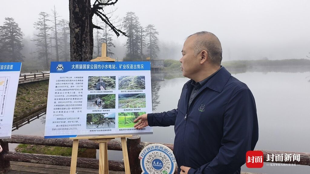 大熊猫国家公园眉山管理分局建设管理部部长汤承忠在介绍小水电站、矿业权退出情况