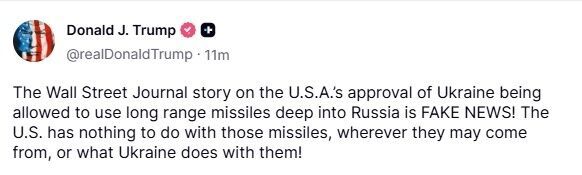 美媒称美国允许乌对俄使用远程导弹 特朗普:假新闻!