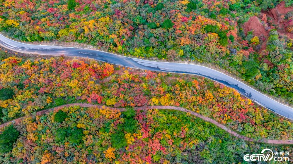 近日,山西省运城市平陆县三门镇马泉沟迎来一年中最绚烂的时刻。从空中俯瞰,山林间五彩斑斓,红、橙、黄、绿的秋叶层层叠叠,秋景如画。