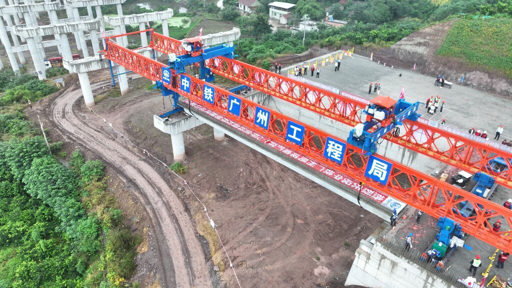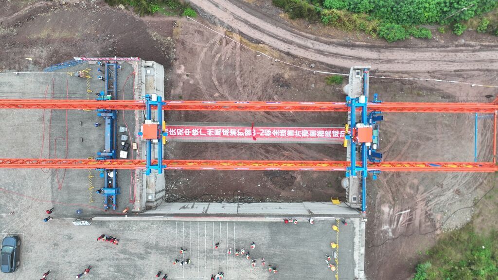 中铁广州局成渝高速公路扩容ZCB3-2标项目经理刘涛介绍,箱梁好比房屋的梁柱,承担起了房屋的全部重量,为后续桥面施工提供了保障。为确保首片箱梁顺利架设,项目部邀请5名桥梁工程专家评审把关,通过钢筋专用胎架定位、模板反拱设计、混凝土分层养护及预应力智能管控等工艺严控箱梁预制流程。架设过程中,作业人员严格按规程开展吊装、对位、落梁等工序,全程监测保障架设精准度与稳定性。