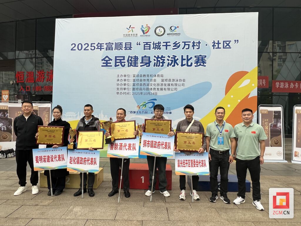 近日,2025年富顺县“百城千县万村·社区”全民健身游泳比赛在县文体中心恒温游泳馆成功举行并圆满落幕。本次赛事由县教育体育局主办,县体育总会、县游泳协会承办,吸引了来自四川富顺晨光经开区管委会、赵化镇、狮市镇、永年镇四支乡镇代表队,以及窖龄酒、蜀明诺建设两支民间代表队,共计六支队伍的百余名职工运动员参与角逐。