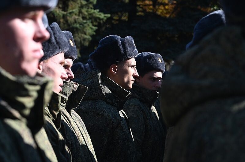 当地时间10月15日,俄罗斯罗斯托夫州巴泰斯克,当地征兵中心举行仪式。
