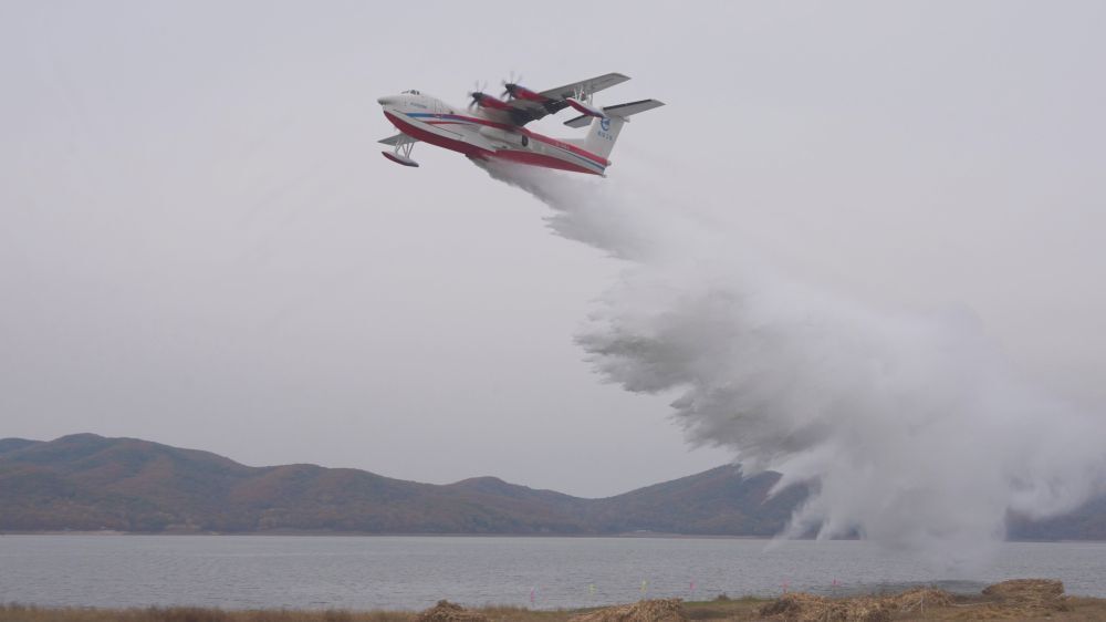 图为AG600飞机汲水。(受访单位供图)