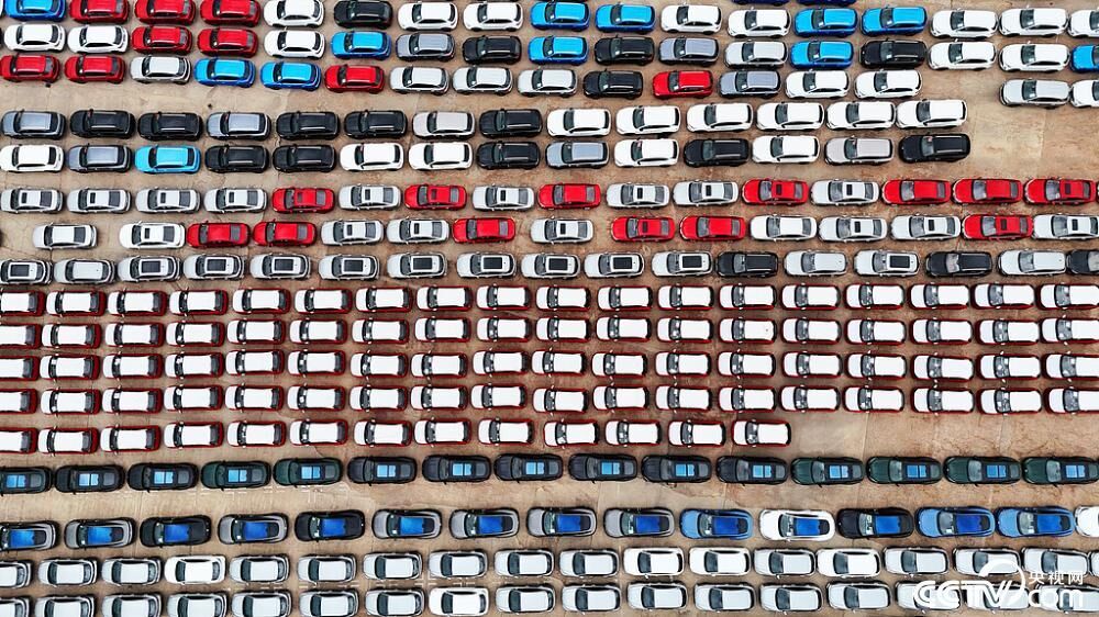 10月30日,江苏连云港港口码头,大批国产汽车正在集结等待装船出口海外。