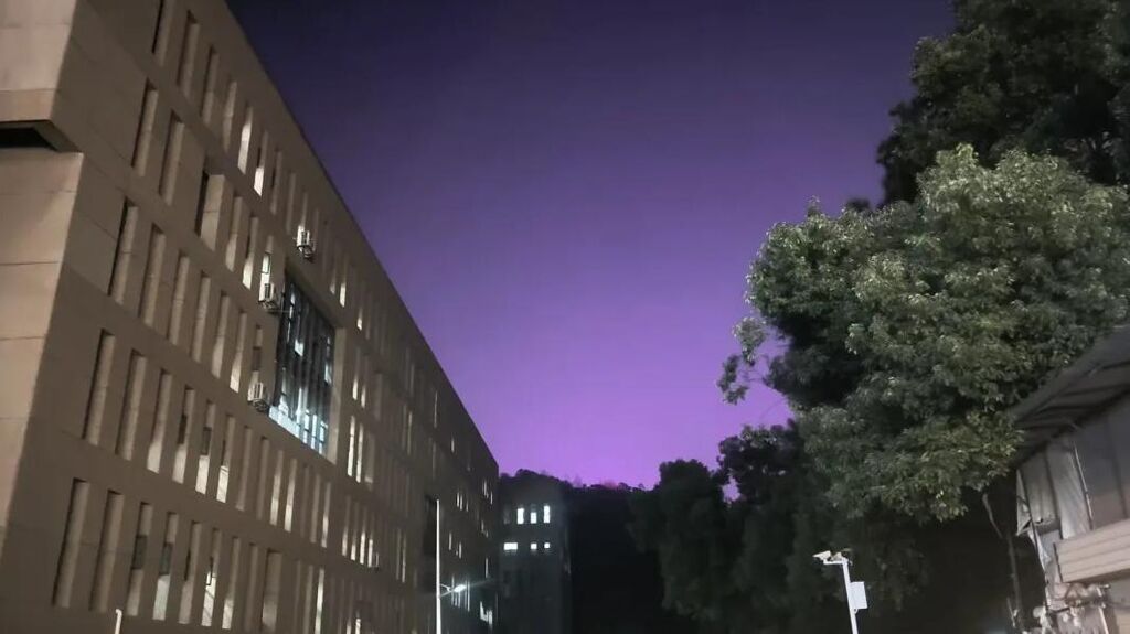 ·长沙有市民称拍到了“极光”,城市管理局工作人员回应:因天气不好,灯光弥漫了大部分天空,其实是光线的折射问题。