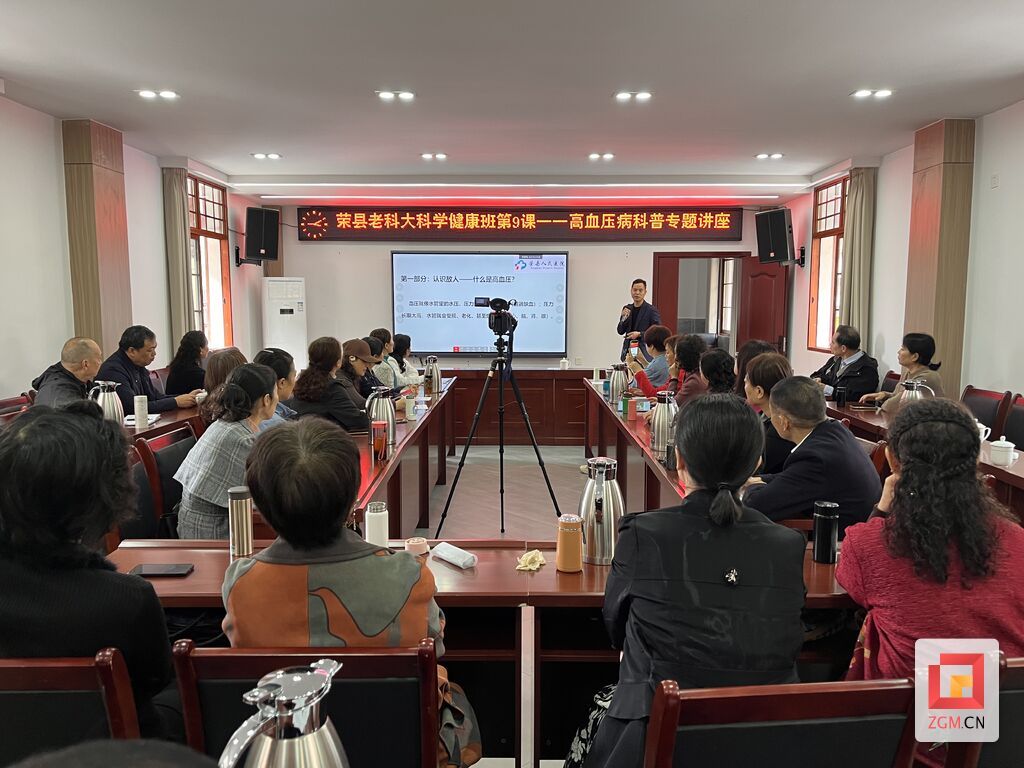 10月30日,荣县社区学院旗下的荣县老年科技大学学习中心与荣县旭阳镇桂林街社区学习中心联合发力,共同举办老年健康养生讲座。本期讲座聚焦老年群体高发的高血压问题,特邀荣县人民医院心血管内科主任杨华担任主讲,为现场老年学员们带来专业、实用的高血压病科普知识,助力老人们科学管理血压,守护身体健康。