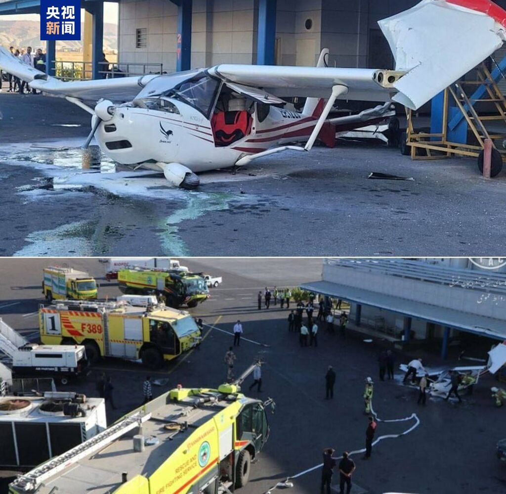 当地时间11月1日,一架超轻型飞机在伊朗大不里士机场跑道降落时失控,并撞上机场一栋建筑。机上唯一的飞行员安全弹射逃生,但飞机受损。