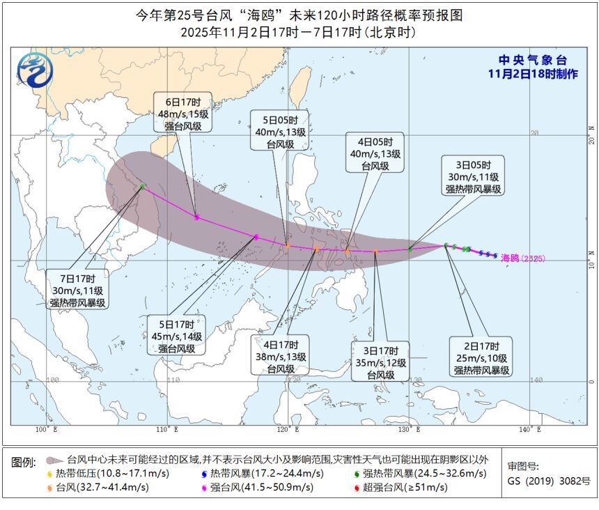 今年第25号台风“海鸥”5日开始将进入南海。欧阳翼介绍,目前预报来看,“海鸥”大概率不会登陆我国,但下周会导致南海出现大风,海南部分地区也可能出现降雨。