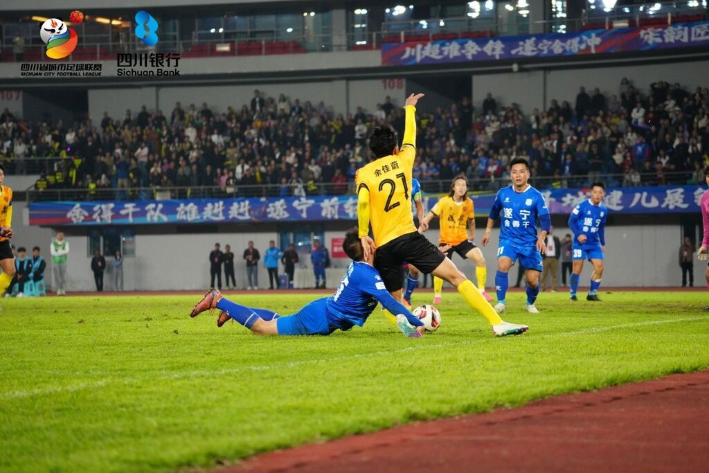 10月26日的四川足坛沸腾了——遂宁队,这支首轮0:6惨败成都、被网友调侃“遂零”的队伍,以少一人情况下鏖战近109分钟逼平“川超”霸主成都队,成为首个从成都队身上拿到积分的球队。要知道,此前成都队可是全川唯一5战全胜球队,以19个净胜球遥遥领先。是遂宁队打破了成都队以全胜战绩进入淘汰赛的目标,重新燃起20市州“干翻成都”的热情与希望。