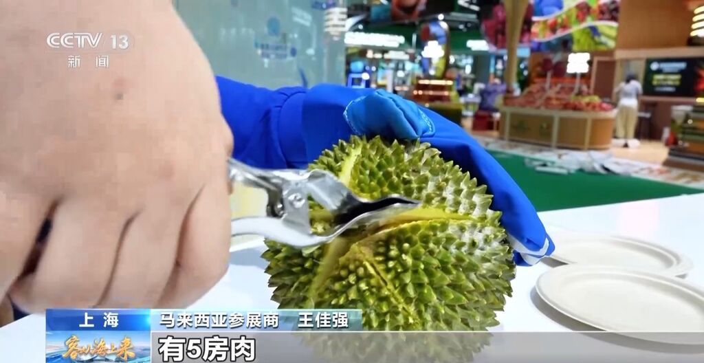 郑连凯:挑榴莲你在行吗?有没有过开盲盒的经历?首次亮相进博会的“榴侦探”,可以给榴莲“做CT”,果肉饱满度,分几房,有没有虫害,这些信息都可以呈现,每颗榴莲完成检测只需要12秒钟,准确率在98%以上。