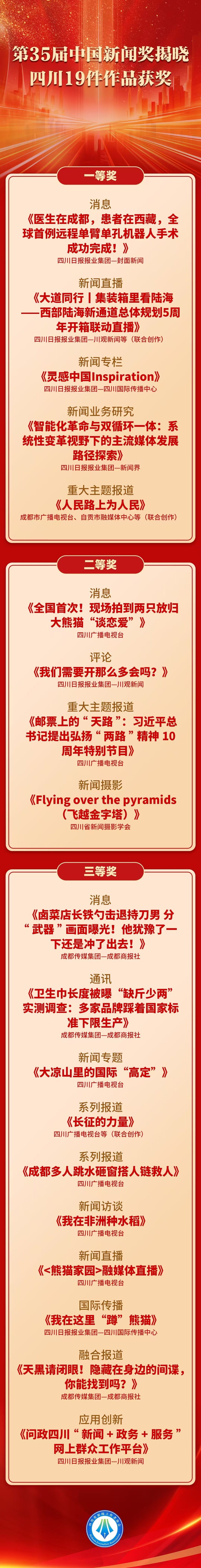 四川省共有19件新闻作品获奖,突破2024年获奖15件的历史纪录,再创新高,位居全国前列。获奖名单如下——