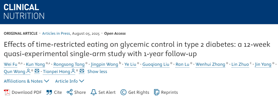 2025年8月,北京大学第三医院的研究人员在《临床营养学》期刊上发布的一项研究发现,不用刻意节食、不用吃减肥餐,只需每天在10小时内吃完三餐,坚持3个月,就可以有效改善2型糖尿病患者的血糖、血脂、脂肪肝,身体炎症、体重也减轻了。