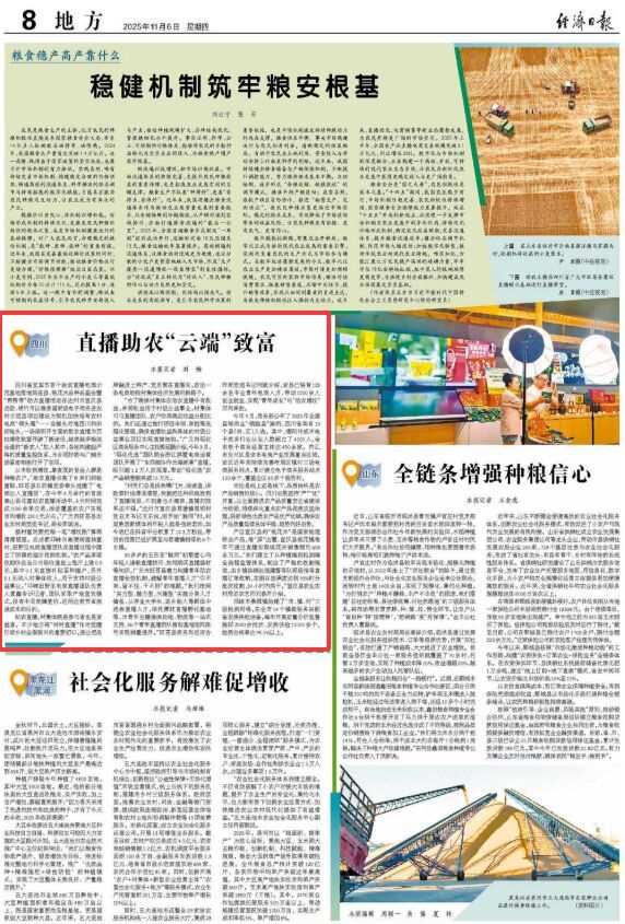 从丰收到增收,最直观的受益人群是种粮农户。“助农直播点亮了乡亲们的致富路,旺苍县五权镇党委牵头组建了‘电商达人直播团’,在今年8月举行的首场高山百花蜜助农直播活动中,3天时间完成1000余单交易,活动覆盖的农户实现亩均增收2000元左右。”广元市旺苍县农业农村局党组书记、局长李斌说。
