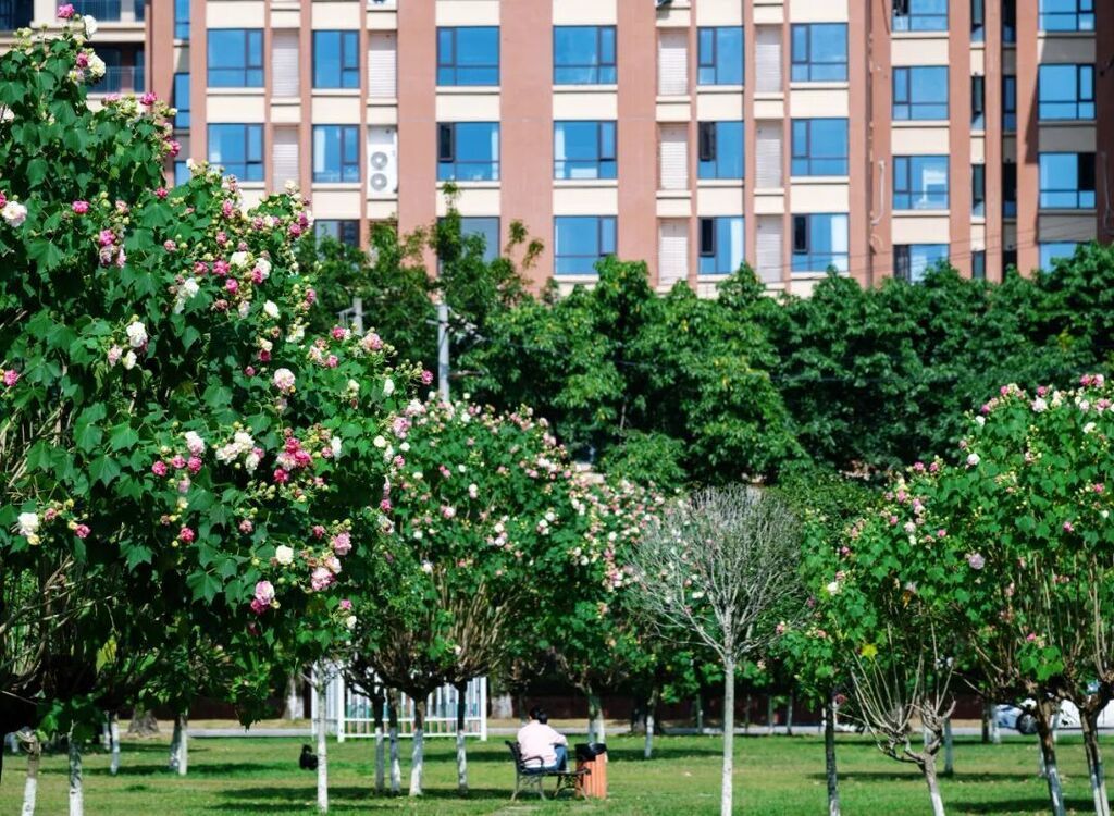 ↑10月27日难得的晴天,市民在芙蓉树下晒太阳 摄影 陶轲