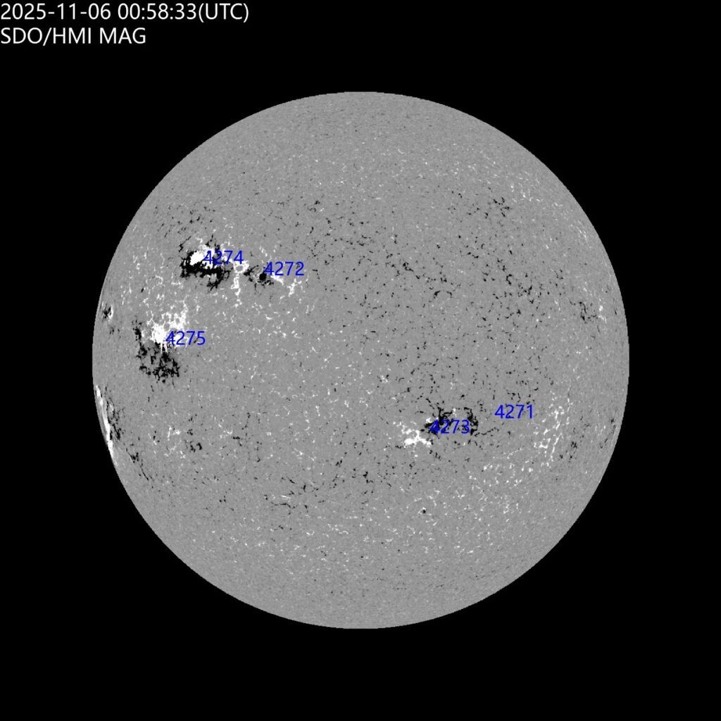 目前太阳表面存在多个活动区,我们重点关注此次爆发耀斑的14274,它的面积达到400u,磁场结构为最复杂的β-γ-δ型,这意味着它还有能量,随时都有再次爆发的能力。同时,我们还关注处在它下方的14275,因为它的面积也不小,有200u,磁场类型为比较复杂的β-γ型,如果未来它也启动,开始快速成长,那我们就可能要面临双重挑战。