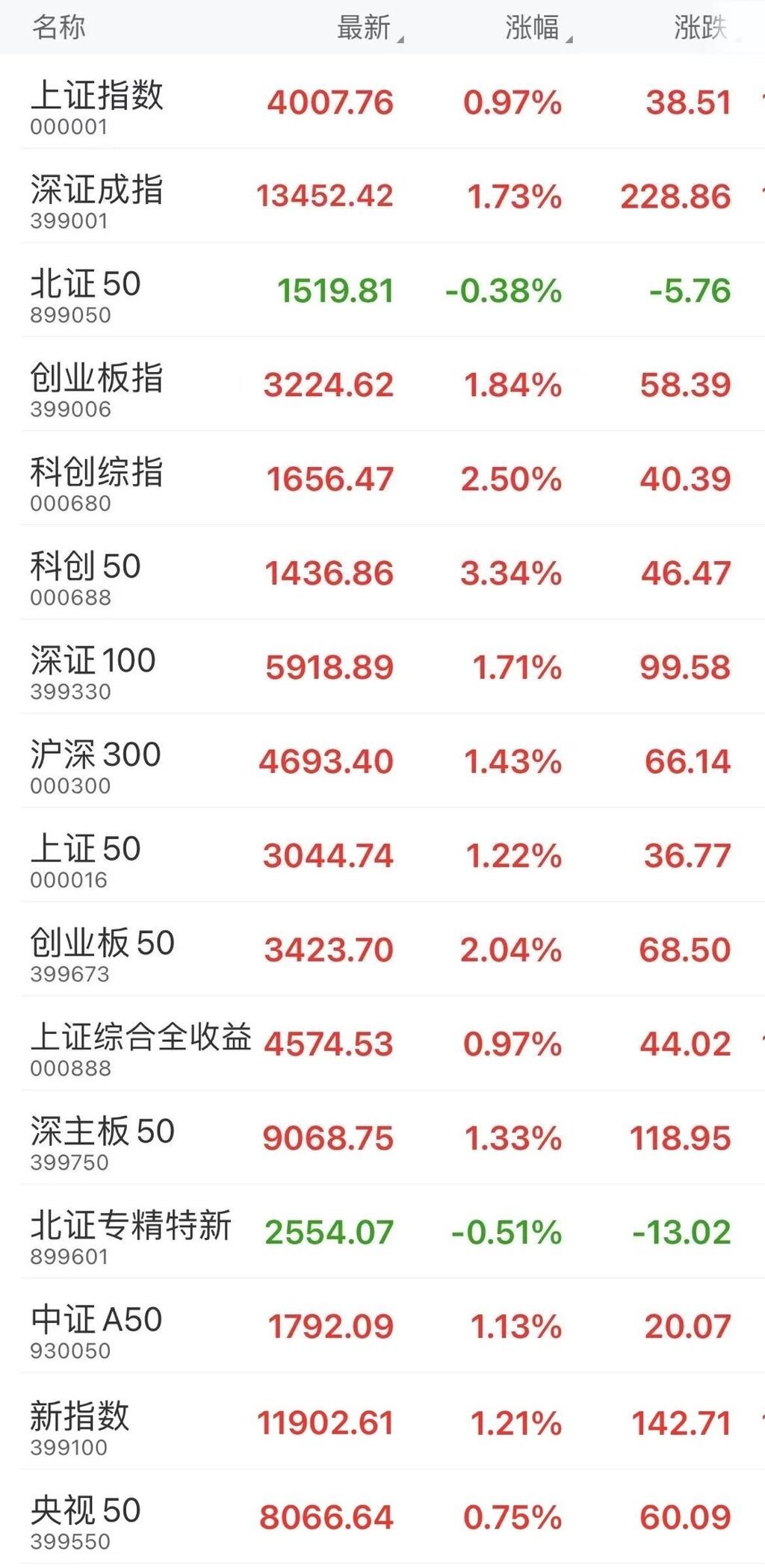 上证指数(000001)涨0.97%,深证成指(399001)涨1.73%,创业板指(399006)涨1.84%。算力硬件产业链爆发,存储器、CPO方向领涨;电工电网、铝业、磷化工、机器人板块涨幅靠前。
