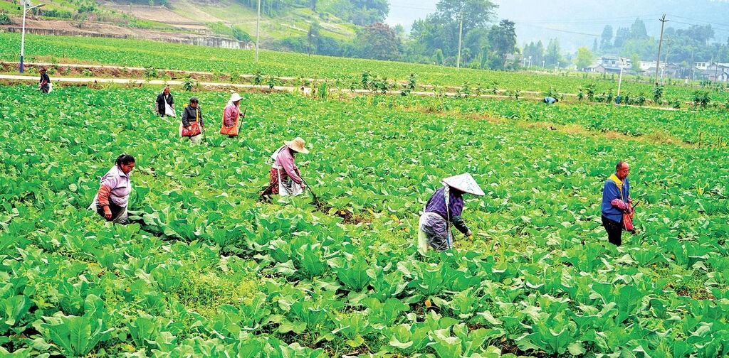 在名山区万亩粮经现代农业园区,800余亩蔬菜基地绿意盎然,40余名工人分散作业,弯腰除草、精准追肥,抓紧秋冬管护关键期,为稳产丰收蓄力。
