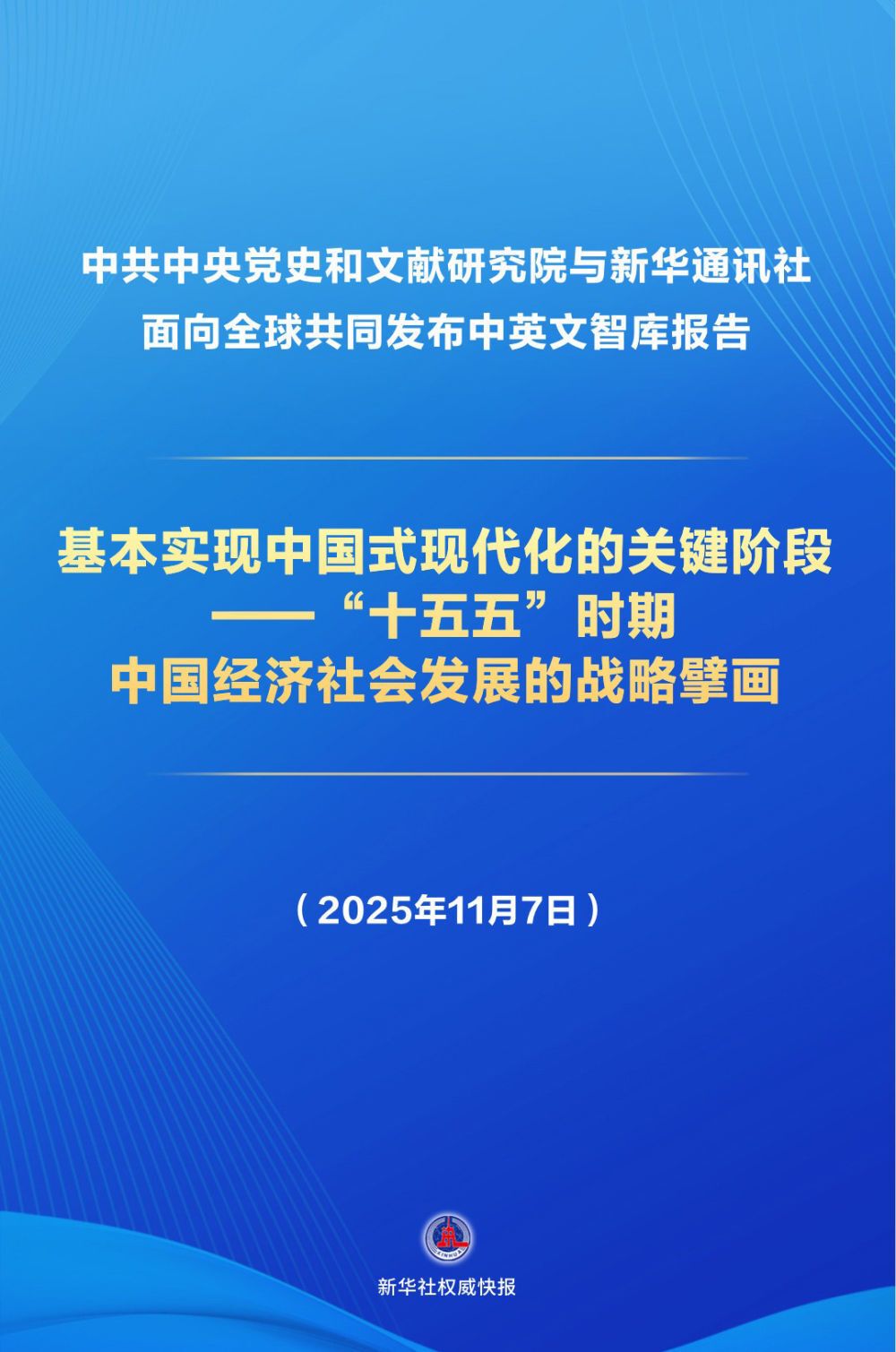 11月7日,中共中央党史和文献研究院国家高端智库与新华社国家高端智库联合举办“红厅论坛:读懂中国共产党二十届四中全会”国际研讨会,共同发布《基本实现中国式现代化的关键阶段——“十五五”时期中国经济社会发展的战略擘画》智库报告。