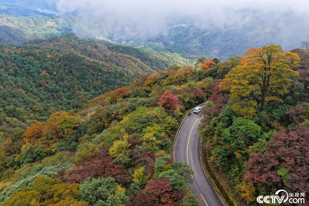 贵州省黔东南州苗族侗族自治州雷山县雷公山国家自然保护区云雾缭绕,漫山遍野层林尽染,宛如一幅浓墨重彩的油画美不胜收。