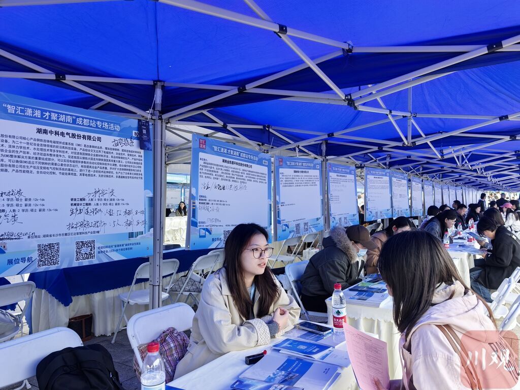 现场招聘区外,省情展示区、文旅体验区和功能服务区同样人气十足。市州风采、人文生态、湘味美食、文创礼包、政策清单、求职指导等多元内容,让川内学子在求职之余,沉浸式感受湖南的地域文化与引才温度。湖南省人社厅相关负责人表示,希望通过这样全方位、多层次的引才聚才服务体系,让优秀人才深入感受湖南“引才更引心”的诚意,吸引更多人才奔赴湖南、共建湖南。
