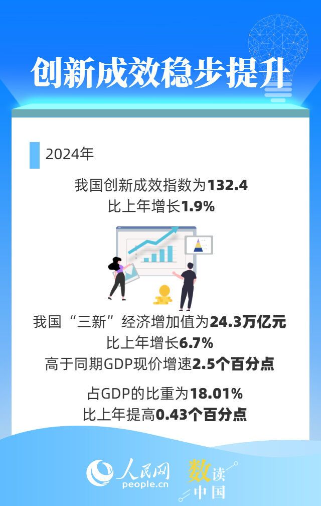 世界知识产权组织(WIPO)发布的《2025年全球创新指数报告》显示,中国排名提升至全球第10位,首次跻身全球前十;国家统计局日前发布2024年中国创新指数测算结果,2024年中国创新指数达到174.2,保持稳步增长态势。中国跑出创新“加速度”,一组数据来看。