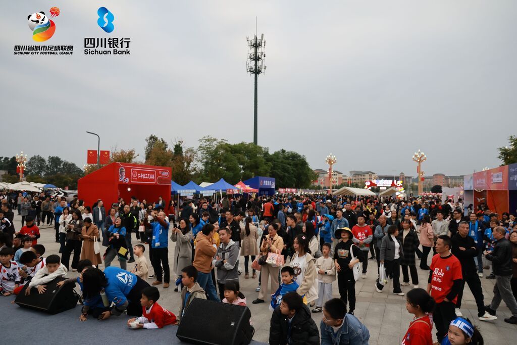 在乐山,“川超”的热浪,绝不止于球场看台。10月12日对阵凉山那场榜首之战,正是吹出“全城观赛风”的生动写照。当赛场内球迷为每一次攻防心潮澎湃时,赛场外同样激情涌动——文旅集市上,一块8米×4米的LED大屏前坐满了市民,人们吃着烧烤、喝着啤酒,在夜幕下共享足球盛宴。这份热度更蔓延至城市各个角落:万达、世豪等核心商圈的超高清大屏同步直播赛事,让逛街的市民驻足欢呼;嘉兴路等美食街区的夜宵店里,电视统一锁定比赛频道,边看球边品尝美食成为当晚最受欢迎的消遣。从场外第二现场到商圈广场,再到街头巷尾的餐馆,乐山,用一张球票“烫”出了一幅全城参与、无处不赛的生动图景。