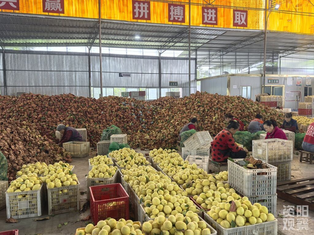 四川柠之恋果业有限公司工厂内,工人正在分拣柠檬。