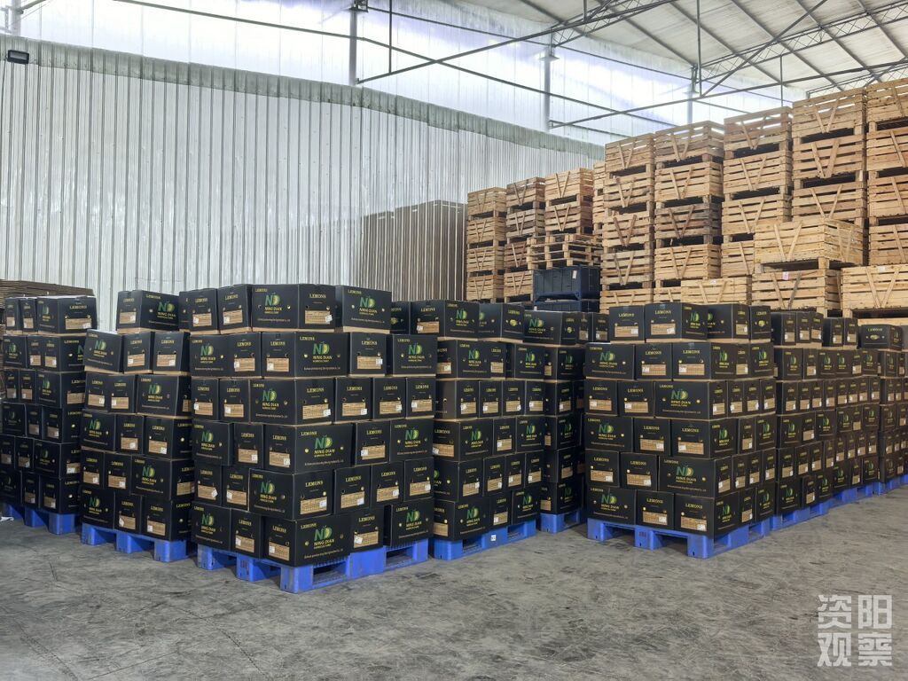 四川柠之恋果业有限公司工厂内,即将发往菲律宾的柠檬。