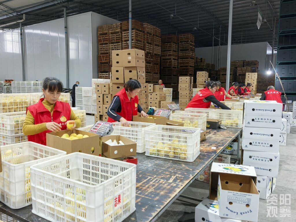 四川外檬国际贸易有限公司工厂内,工人正在打包柠檬。