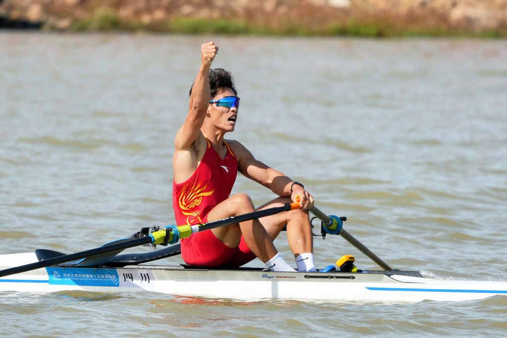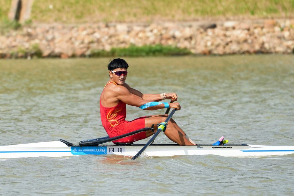 随后进行的男子单人双桨决赛中,来自甘孜州的邓志玮以4分59秒17拿到冠军,让四川省体育代表团在赛艇项目上收获第二枚金牌。