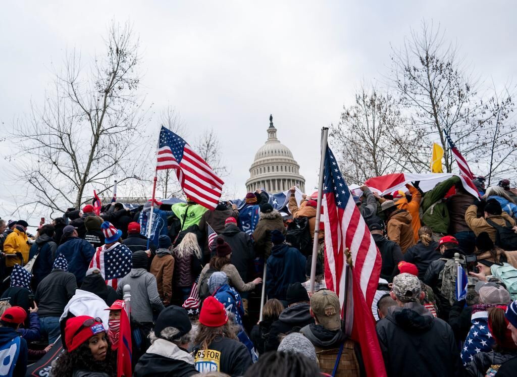 特朗普原话是:“我们将走到国会山,为勇敢的参议员和众议员欢呼。”然而纪录片中,他的话变成:“我们将走到国会山……我将和你们一起,然后我们奋力战斗。”