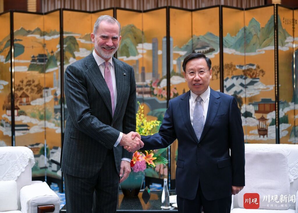 费利佩六世对四川经济社会发展取得的成就表示赞赏。他说,近年来,西班牙与中国始终相互尊重、友好合作,两国关系呈现积极良好发展势头。四川是中国西部的重要省份,与西班牙交流交往密切,双方在经贸、产业、人文等各领域发展互补性强、合作前景广阔。愿推动西班牙与四川建立更加紧密的合作关系,实现互利共赢发展,更好造福两地人民。
