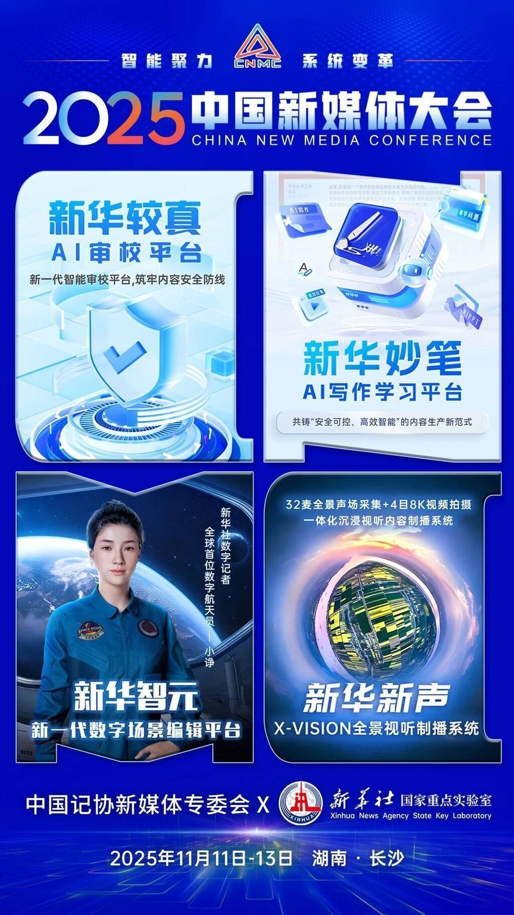 2025中国新媒体大会将于11日至13日在湖南长沙召开,中国记协新媒体专业委员会各成员单位纷纷推出“联名海报”为大会预热。
