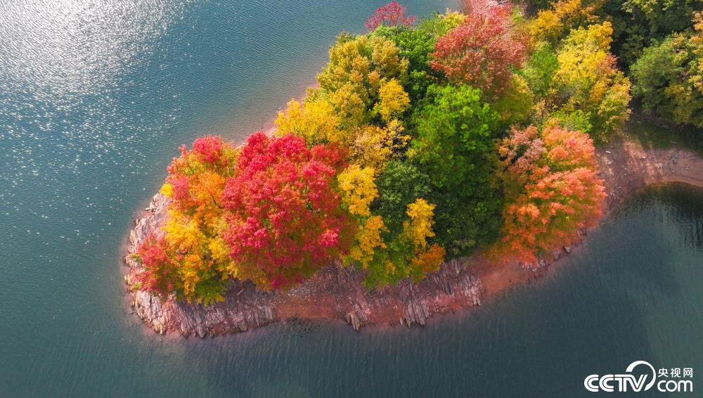 浙江省杭州市淳安县红叶湾层林尽染,空中俯瞰,色彩斑斓的岛屿镶嵌在千岛湖秀美的湖面上,构成一幅幅绚烂的初冬生态画卷。