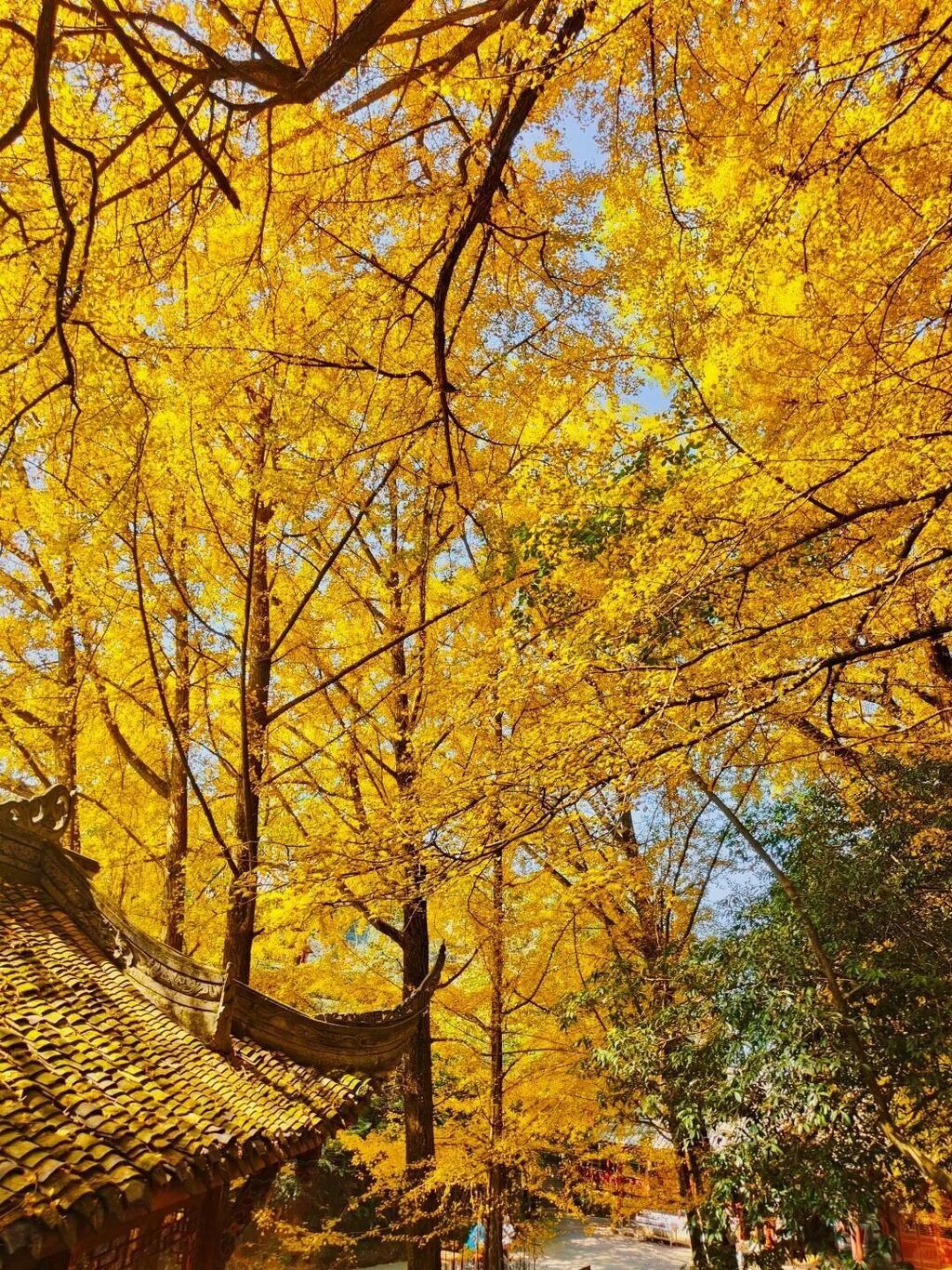 在蒙顶山景区内乘坐索道前往天盖寺,正值一年当中的“银杏季”,天盖寺的千年银杏群已达盛景。记者在这里见到不少游客专程来打卡这满眼金色,蒙顶山的千年银杏也成为每年秋季令游客慕名而来的热门景点。