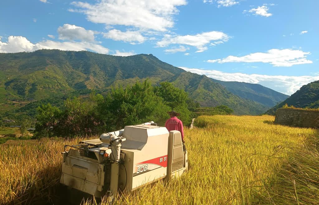 2023年10月,鼎信集团大型机械开进后山,316亩“望天田”开始平整。一年后,220余亩梯田式水田铺展,2座抽水泵房、3.6公里管网同步建成;又一年后,迎来第一季水稻丰收。
