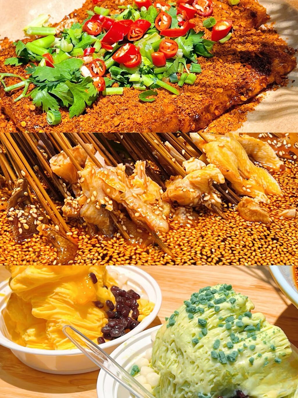 凉山的餐桌,则洋溢着高原的豪迈与纯粹。坨坨肉堪称肉食爱好者的终极梦想,高山乌金猪的肉块仅用盐和花椒煮熟,蘸上特制辣椒面,瘦肉嚼劲十足,肥肉晶莹不腻,大口吃肉的快乐诠释着彝乡风情。乌洋芋带着高山的馈赠,表皮与果肉皆呈紫色,蒸食时的软糯香甜或烙成饼后的焦香,都让人难忘。岩鹰鸡纤维细腻,无论清炖还是爆炒都鲜味十足,搭配一杯当地酿造的燕麦酒,谷物的醇香与鸡肉的鲜美相得益彰。雷波马湖莼菜则是另一番滋味,滑嫩的口感在高汤中舒展,尽显“水中珍品”的特质,而当地的脐橙与绿茶,更让这场舌尖之旅多了几分清甜余韵。