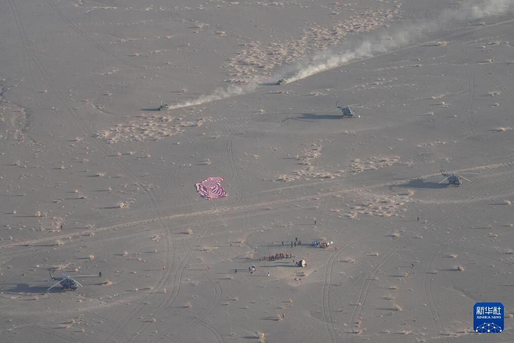 11月14日,载着神舟二十号航天员乘组的神舟二十一号载人飞船返回舱在东风着陆场成功着陆。