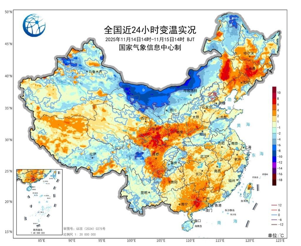 下午2时,石家庄气温超过23℃,比常年11月中旬的最高气温11.3℃高出12℃多。沈阳达到17.5℃,与11月中旬的历史纪录仅差0.1℃。然而,北方近期的温暖即将被寒潮“一网打尽”。