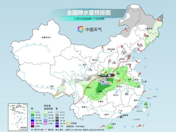 今明天(11月16日至17日),今年下半年首场寒潮影响我国中东部地区,局地降温可超14℃,不少地方气温将创今年下半年来新低,较前期冷暖反差明显,公众请注意适时添衣,谨防感冒。降水方面,西南地区降雨将有所增多,秦岭及大巴山区局地有较强降雪,公众雨雪天气出行请留意交通安全。