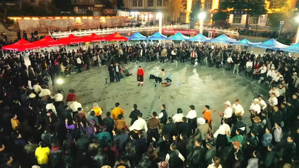 11月15日,星期六,创造世界纪录已经过去3个多月了。记者再次回到巴塘县城,站在傍晚的中山广场上,刚换班的出租车司机、忙完家务的妇女、干完农活的农民……他们穿着节日盛装从四面八方赶来。“以前周末跳,现在每天跳;平时穿便装,周末穿盛装,大家都记在心里。”高绒背着弦胡,骑着摩托车赶过来。