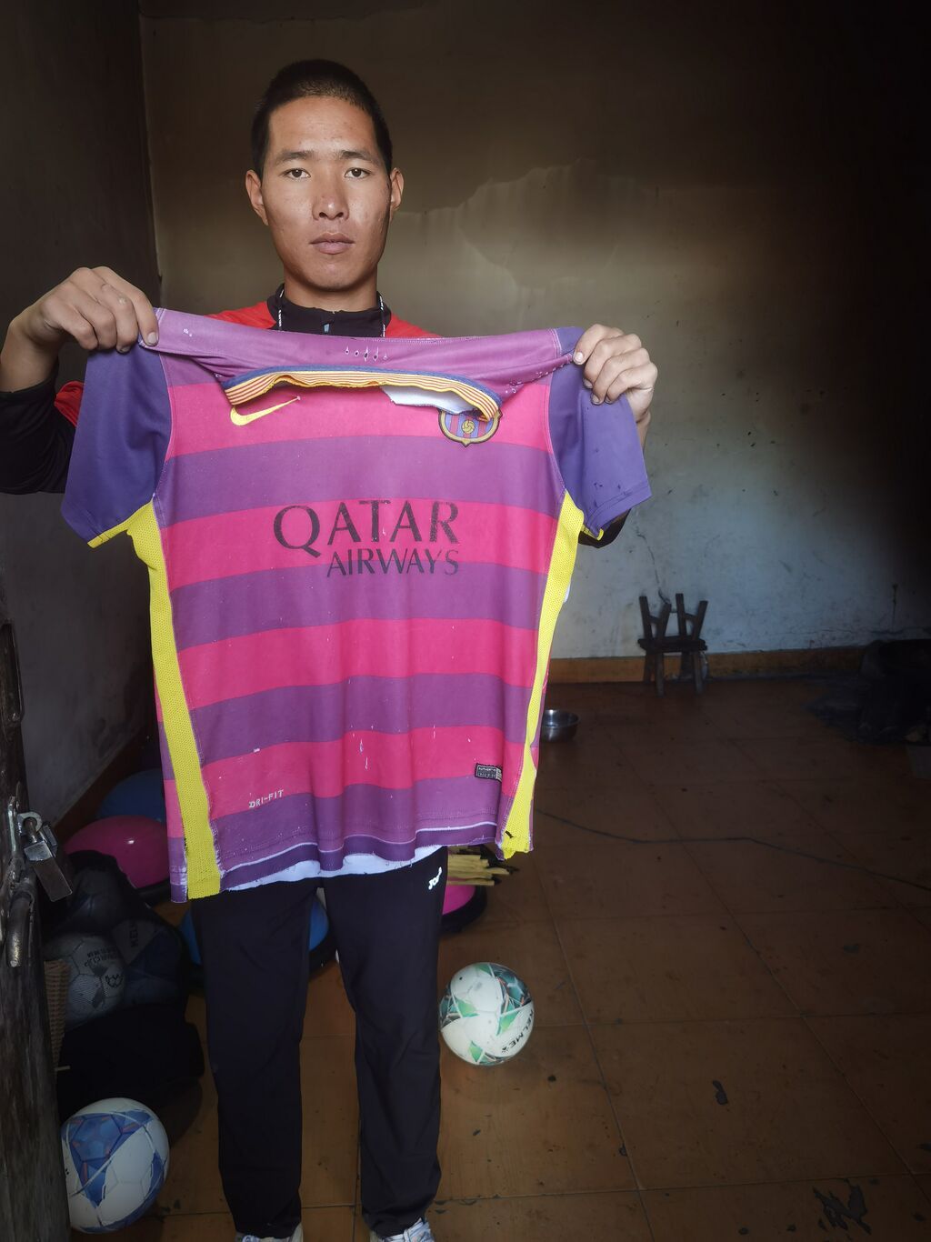 初一结束的那年暑假,即将去西昌读书的同学送给他一件巴萨球衣,说是留个纪念。那件红蓝相间的条纹球衣,为这位大山里的彝族少年推开了一扇新世界的大门,从此疯狂迷上了这项运动。11月4日中午,记者在拉马的家中看到了这件球衣,虽然球衣背面的数字“11”已经完全脱落看不清,但他仍舍不得扔掉。或许,这就是他心中对足球的执着坚守。