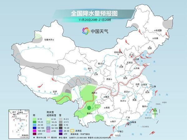 雨雪天气主要分布在西藏东部、四川西部、云南西部和北部、青海南部等地。