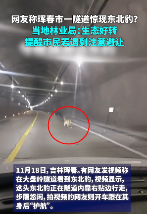 ·网友称珲春市一隧道惊现东北豹?当地林业局回应:生态好转,提醒市民若遇到注意避让。